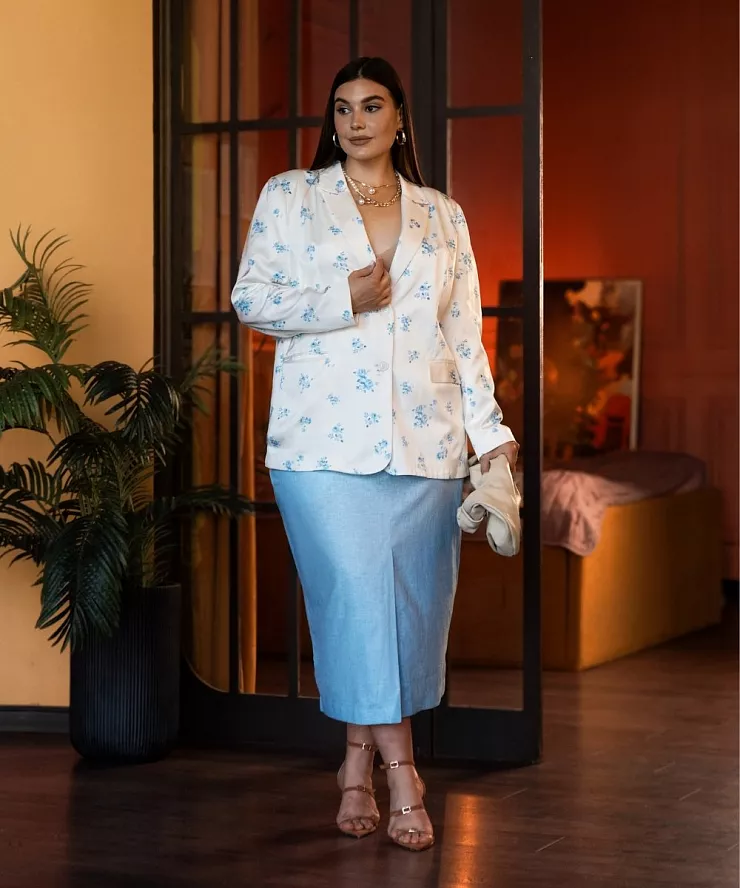 Голубая зауженная юбка из 100% льна