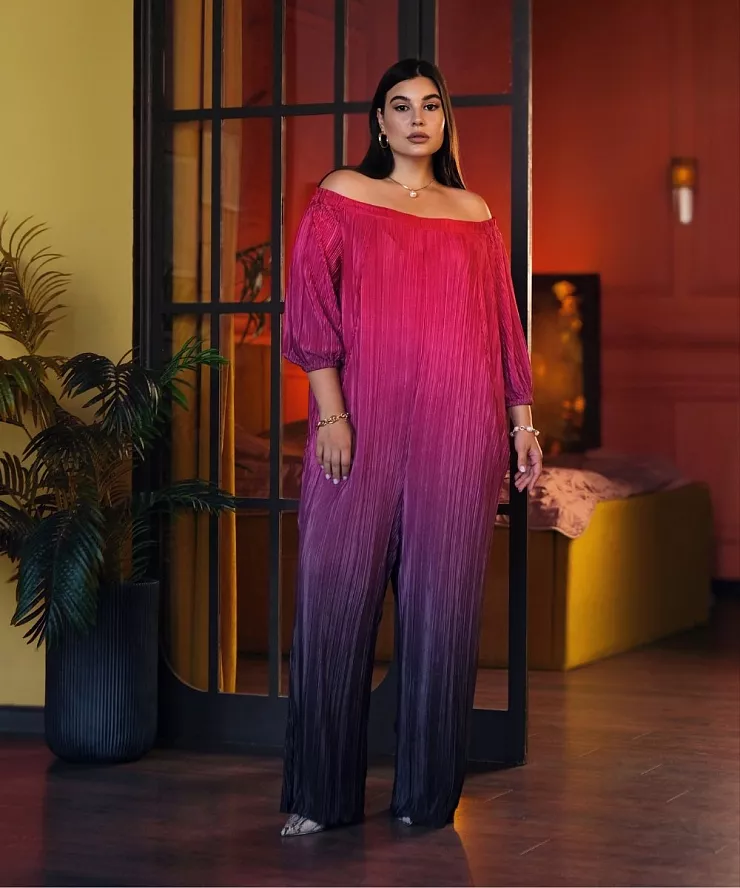 Комбинезон в мелкую гофрировку с градиентным принтом