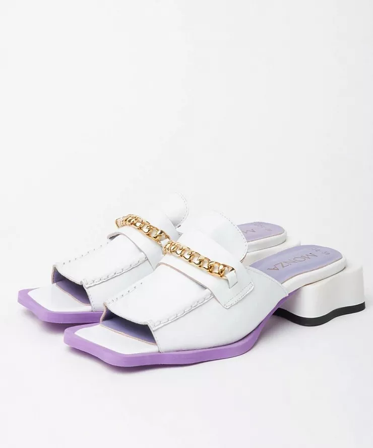 Белые босоножки с цепочкой на низком каблуке