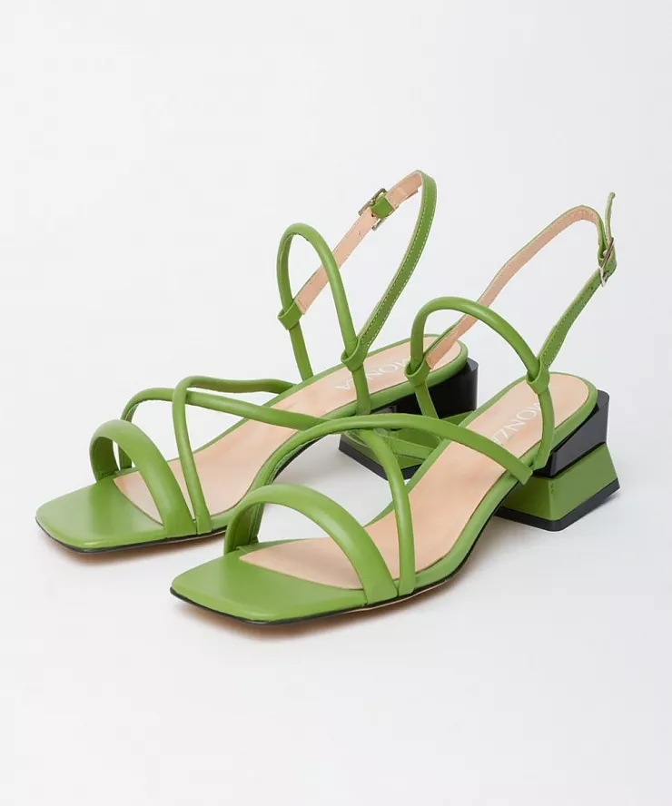 Кожаные зеленые босоножки на низком каблуке