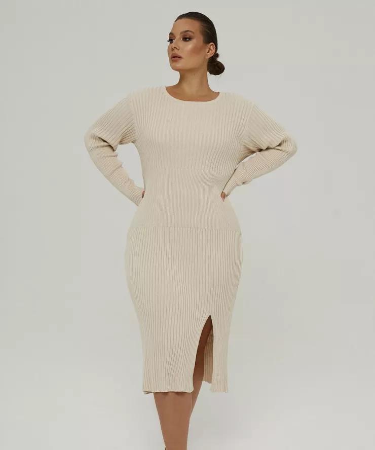 Вязаное платье чулок из смесового хлопка минималистичного цвета