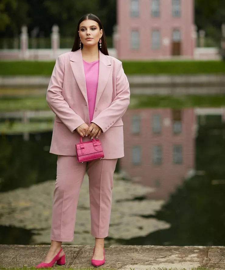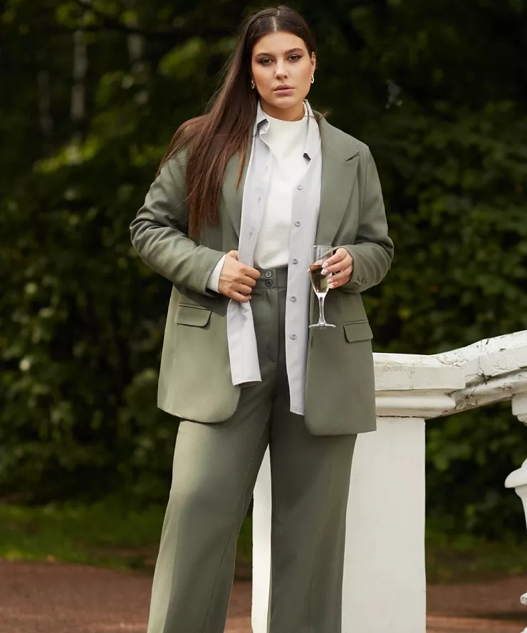 Костюмные брюки в сочетании с пиджаком из шерсти – простая в исполнении, но достаточно лаконичная вариация, если вы любите умеренную строгость. Это стильно и красиво. К тому же костюм всегда можно дополнить легким бадлоном, казаками, аксессуарами. Используйте 1-3 оттенка в одном образе, чтобы создать динамику цвета.