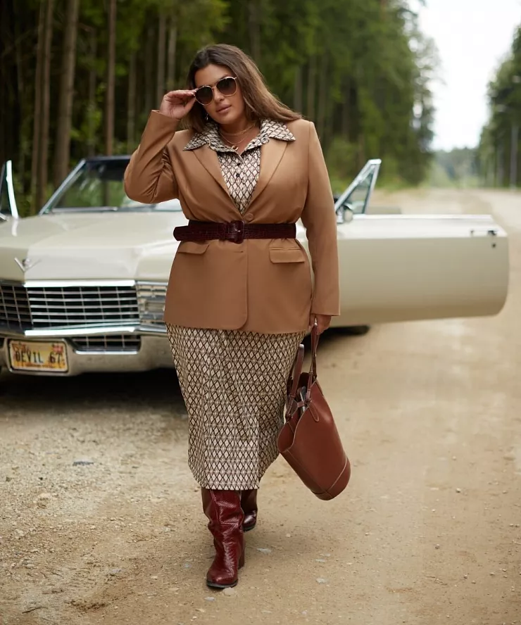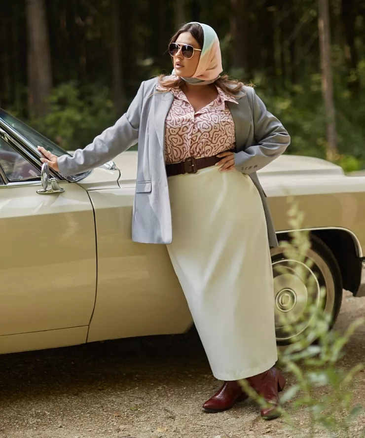 Даже летом самые модные фэшиониста щеголяли в юбках макси, сейчас – и подавно! Длина изделий в макси-длине так понравилась женщинам плюс сайз, что наши красотки заменяли юбки платьями, а платья – брюками палаццо. Чем не альтернатива? Сейчас проявление макси-тренда нашло продолжение и в других изделиях. К тому же, это еще один лайфхак, как удлинить и визуально отточить силуэт!