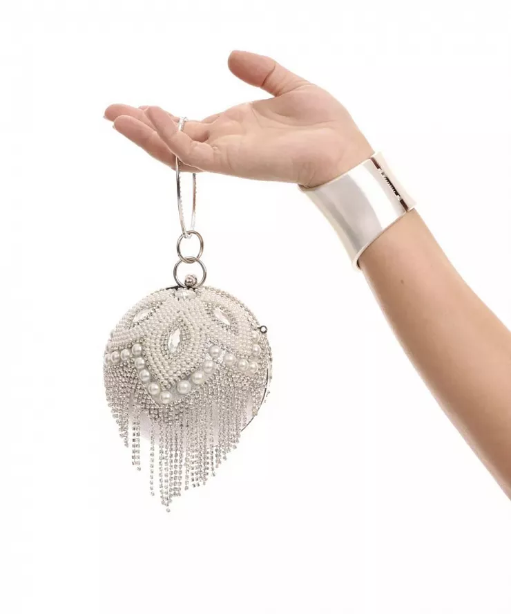 Сумка клатч в виде шара с жемчугом
