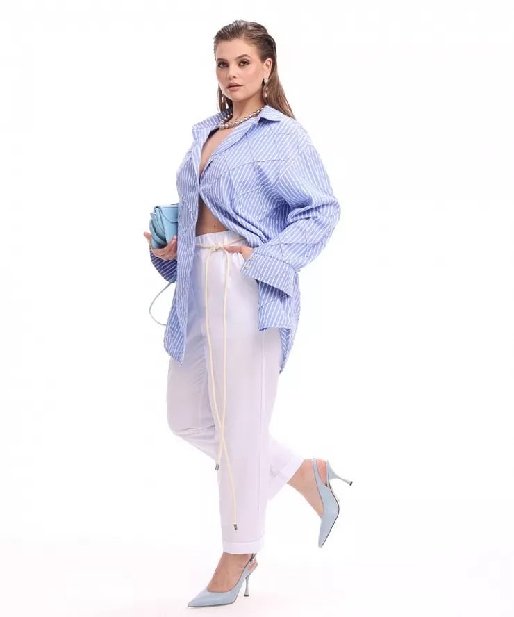 Белые хлопковые брюки с подворотом