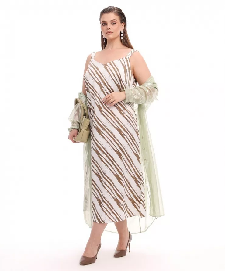 Однослойное платье слинки с коричневым принтом и краш эффектом