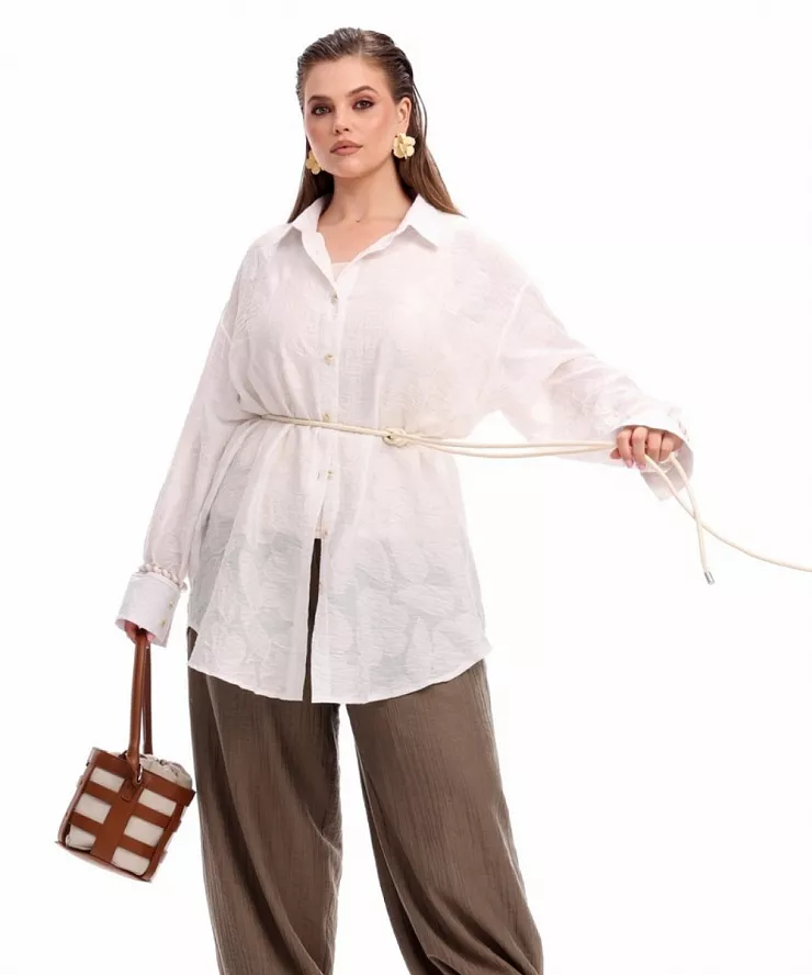 Белая объемная рубашка с английской вышивкой