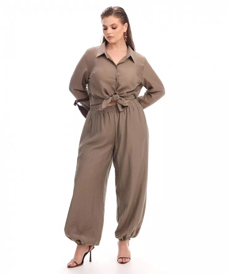 Летние костюмы – отражение настоящего, а не только одних трендов. Здесь мы видим и удобные «Алладины», и рубашки свободного кроя, здесь настоящая гармония и образ для любой из вас. Цветовая гамма спокойная и в то же время перетекающая в динамику каждого момента. Хлопок, тенсель и другие материалы были использованы в коллекции, чтобы подарить вам комфорт в каждом прикосновении с вещью.