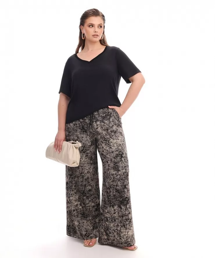 Широкие брюки из черного трикотажного меланжа