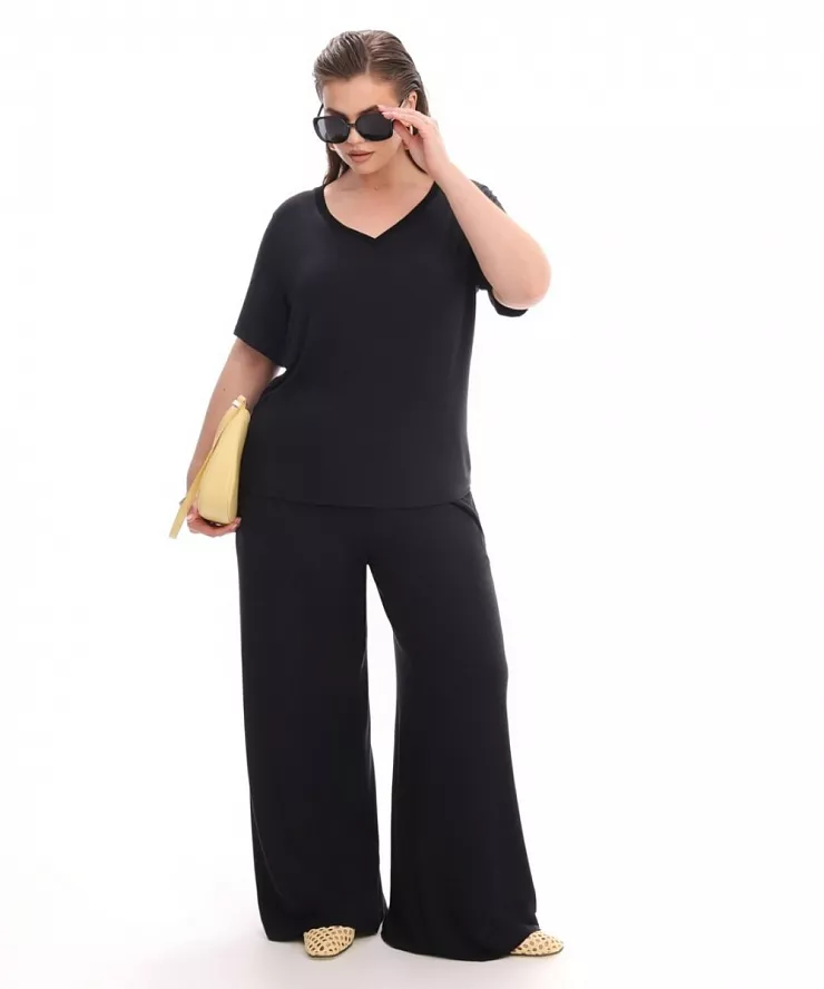 Черные трикотажные широкие брюки на резинке