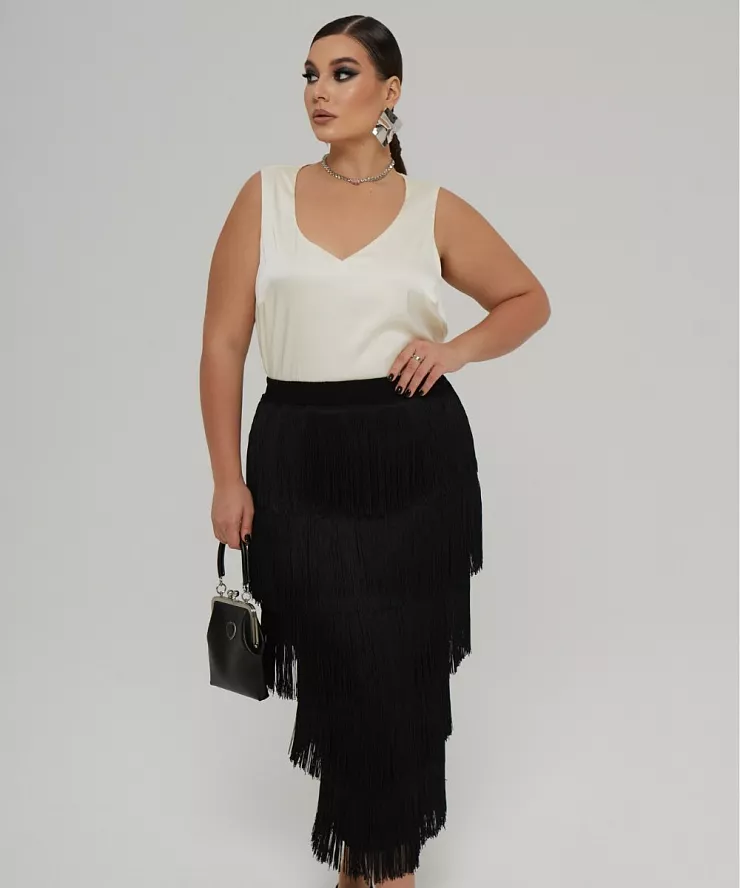 Бахрома – олицетворение старого Голливуда 30-50х гг. Чтобы этот тренд прожил долго, рекомендуем вписать его в повседневный гардероб путем сочетания с базовыми лаконичными вещами: брюками, юбками простого кроя. Дополняйте образ аксессуарами, перчатками, обувью на каблуке.
