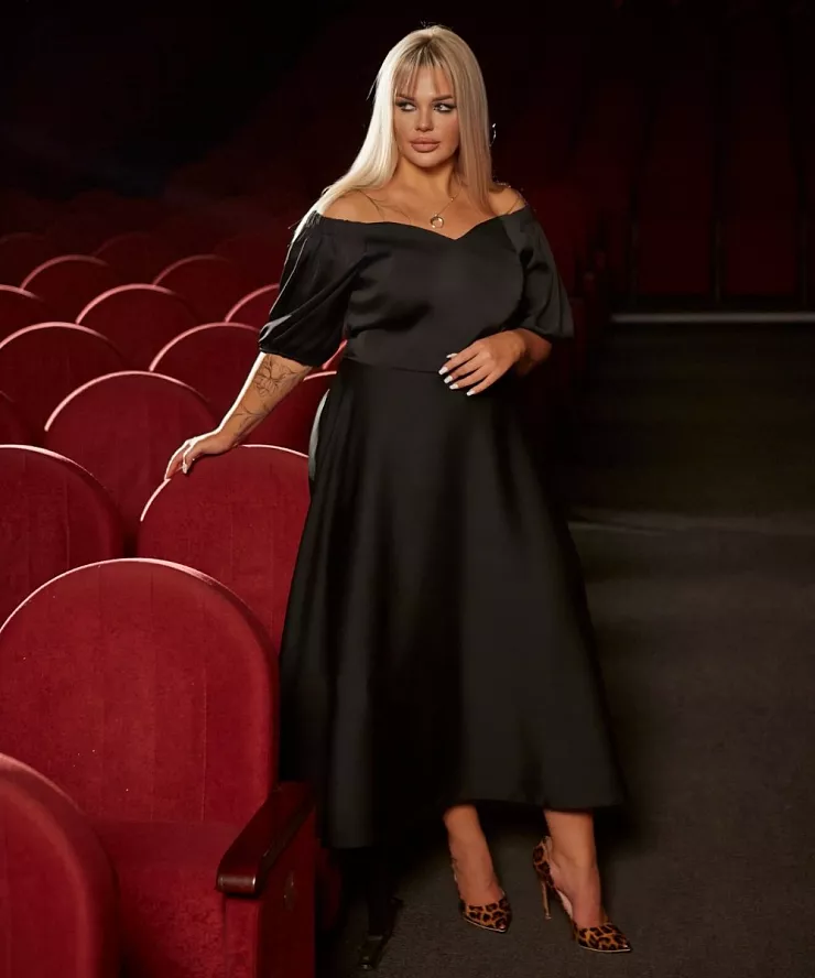 Платье с корсетной вставкой и спущенным рукавом из шелка