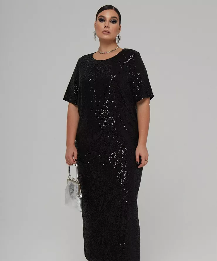 Черная юбка макси на шелковой подкладке с пайетками и разрезом