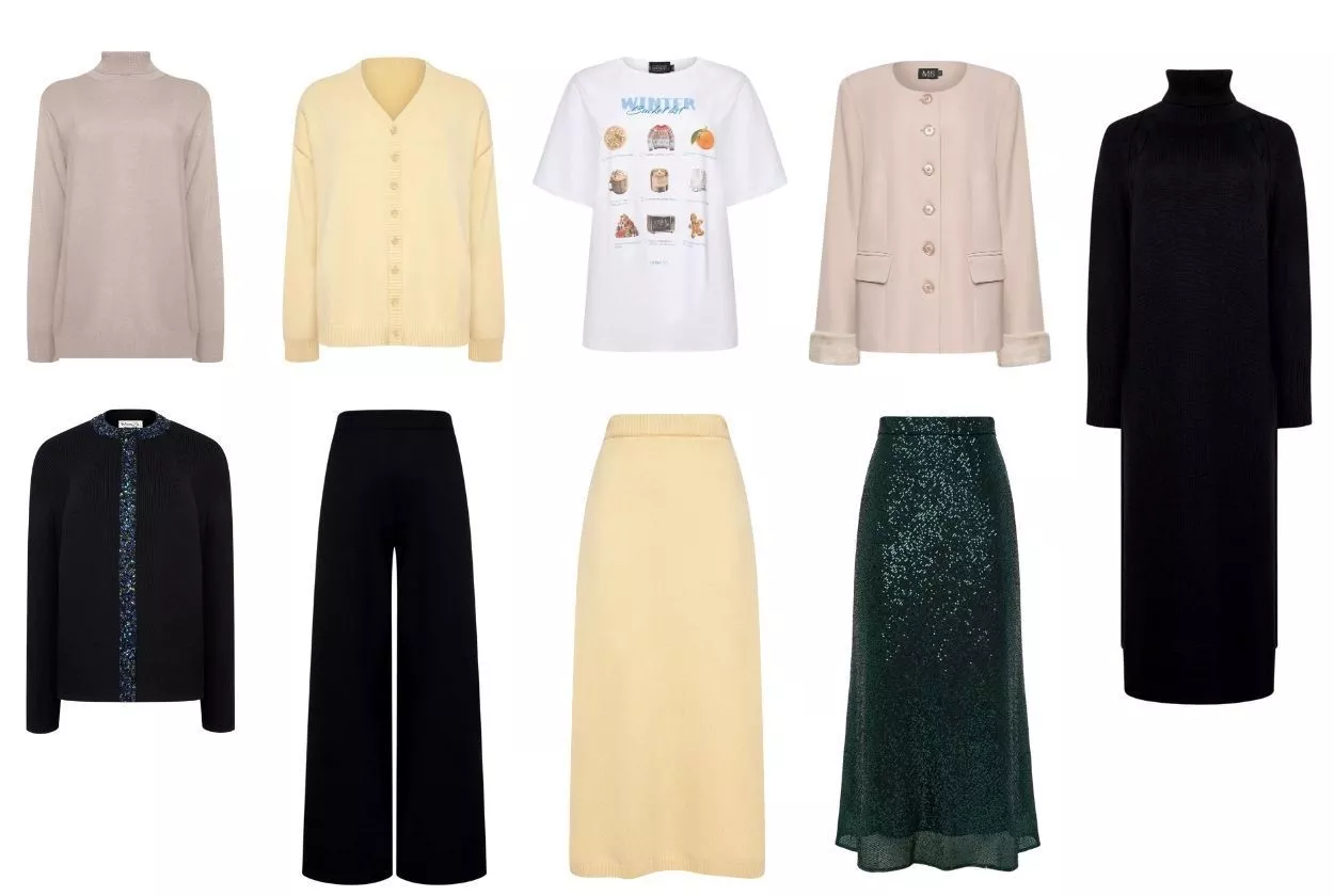 И здесь есть волшебная формула — гардероб в единой цветовой гамме. База с легкими акцентами. Не поверите, но это работает. Так, из 9 мы собрали полноценную капсулу, которая будет работать и с другими элементами имеющегося у вас гардероба.
