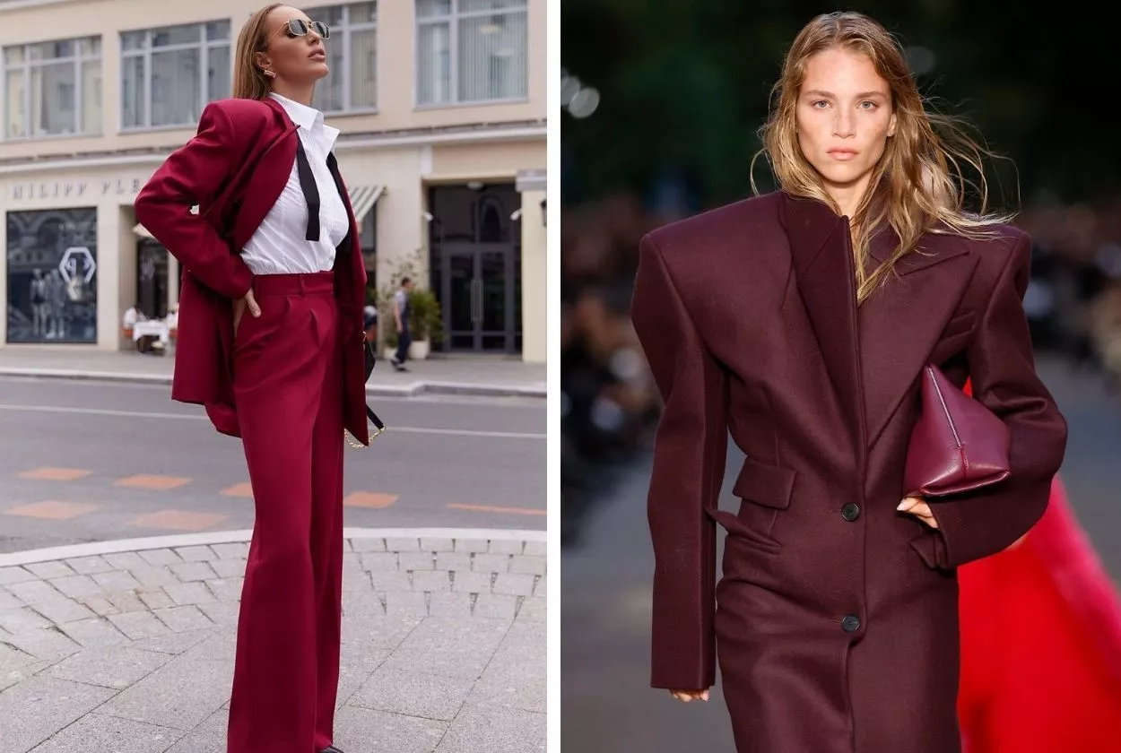 С чем носить: актуальны как моно-образы, так и красивые миксы. Идеально сочетается с молочным, винным, цветом охра и голубым.