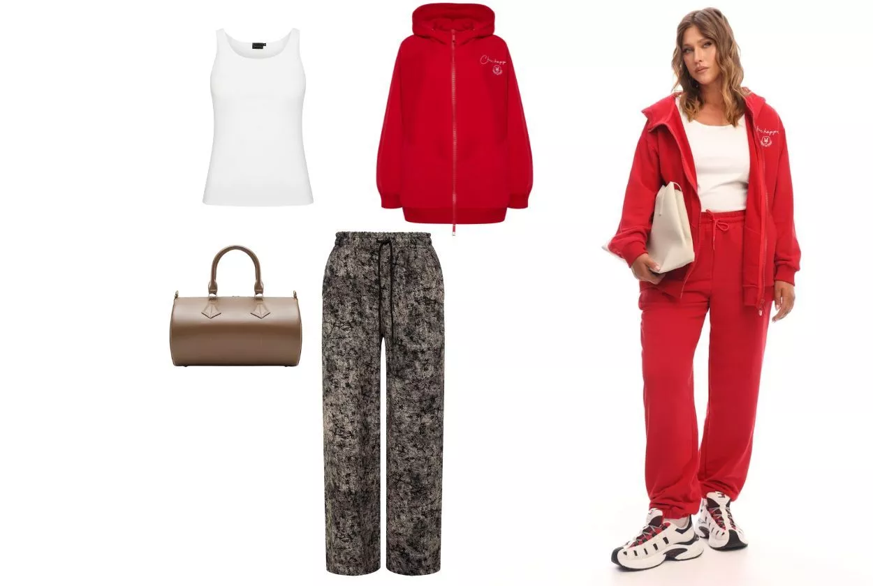 Образ №2: Дерзкая энергия — костюм спорт-шик красного цвета