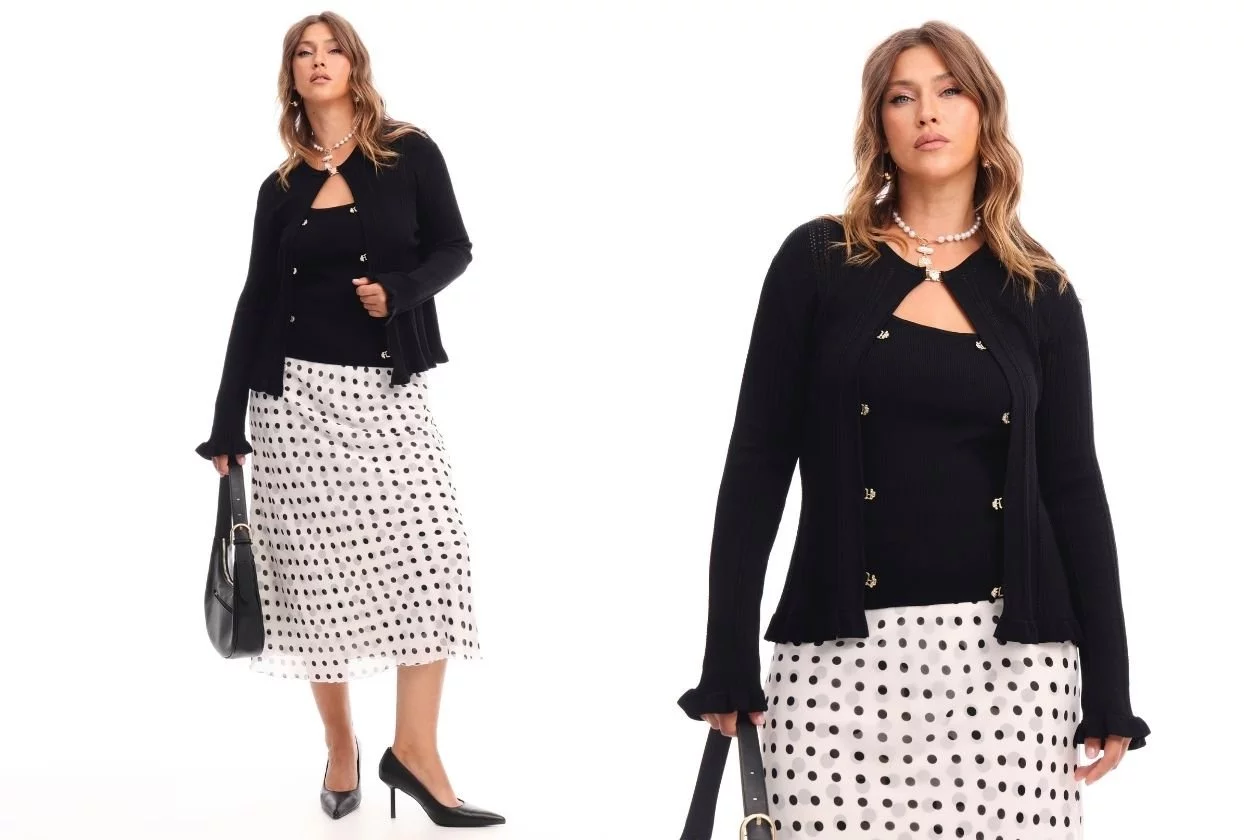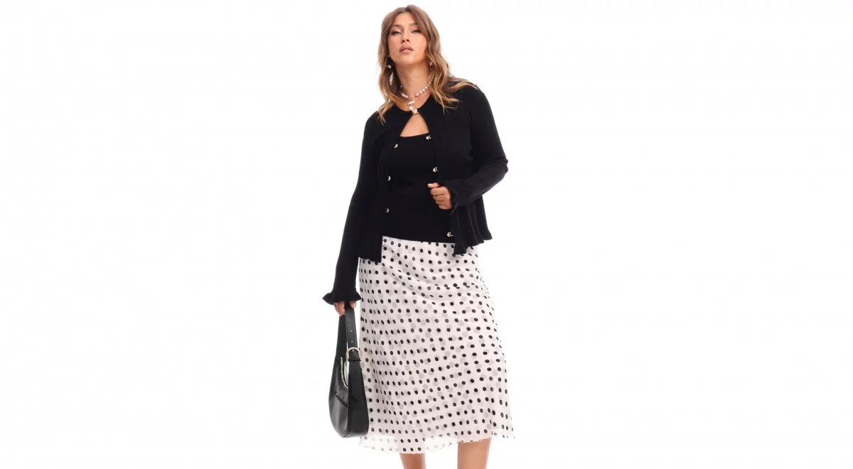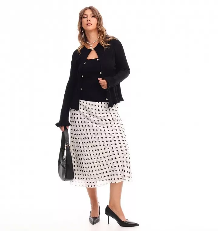 - Юбка макси в горох + трикотажный ансамбль из топа и кардигана