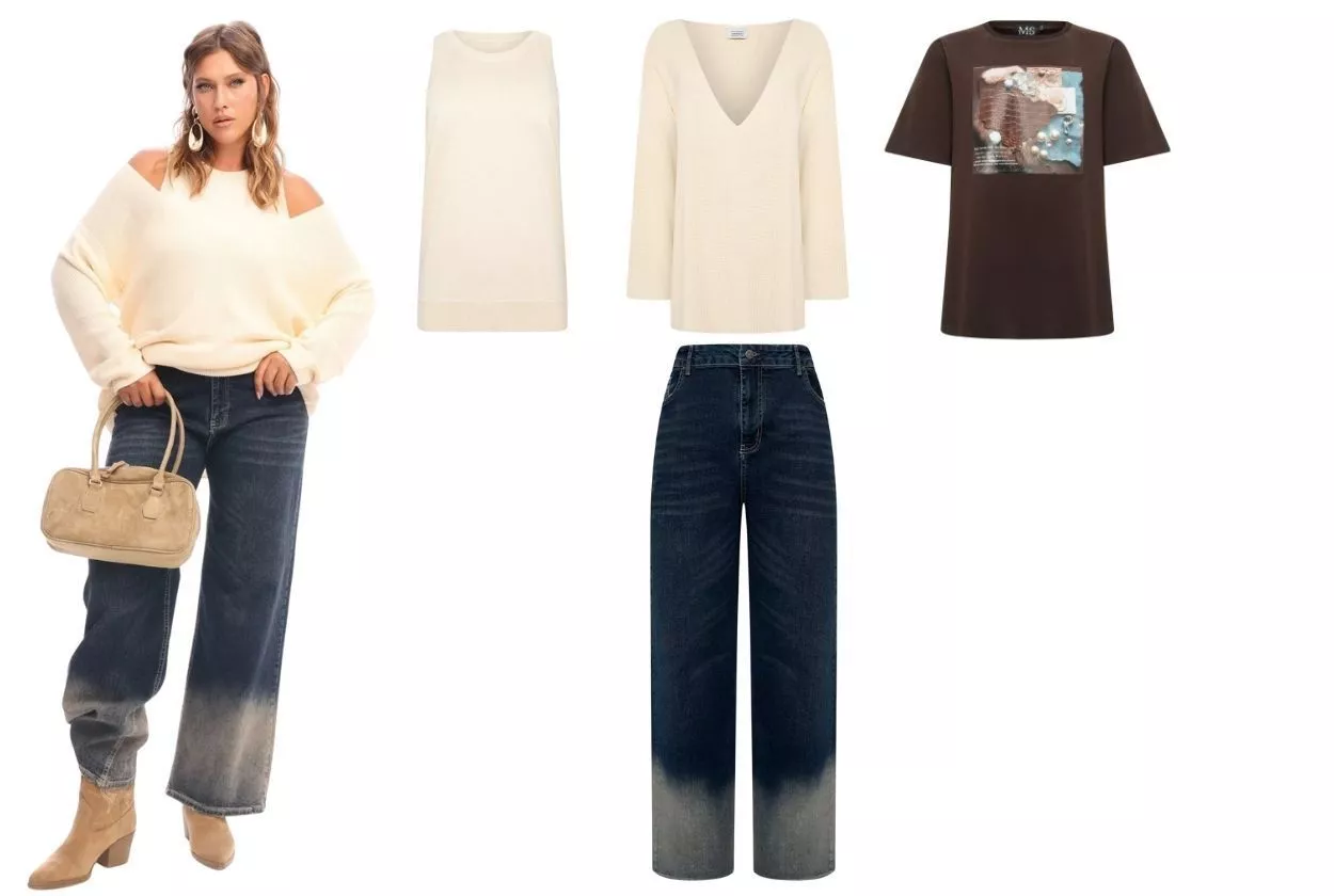 И на этот случай нам есть, что вам предложить: джинсы Селеста, уже ставшие хитом. Когда, проходя мимо, даже худышки будут оборачиваться с вопросом «А где она купила такие джинсы?». Потому что к ним прикованы взгляды. Тот случай, когда верх должен быть спокойный и не перетягивающий на себя внимание. Здесь также прослеживается гранж-история, но благодаря силуэту они сочетаются и с дерзкими ботинками, и с лаконичными лодочками. Футболки, топы и жакеты в минималистичном дизайне будут подстраиваться под «волну» ваших джинсов. Макси-длина и высокая посадка с резинкой сзади подойдут красоткам любого типа фигуры.