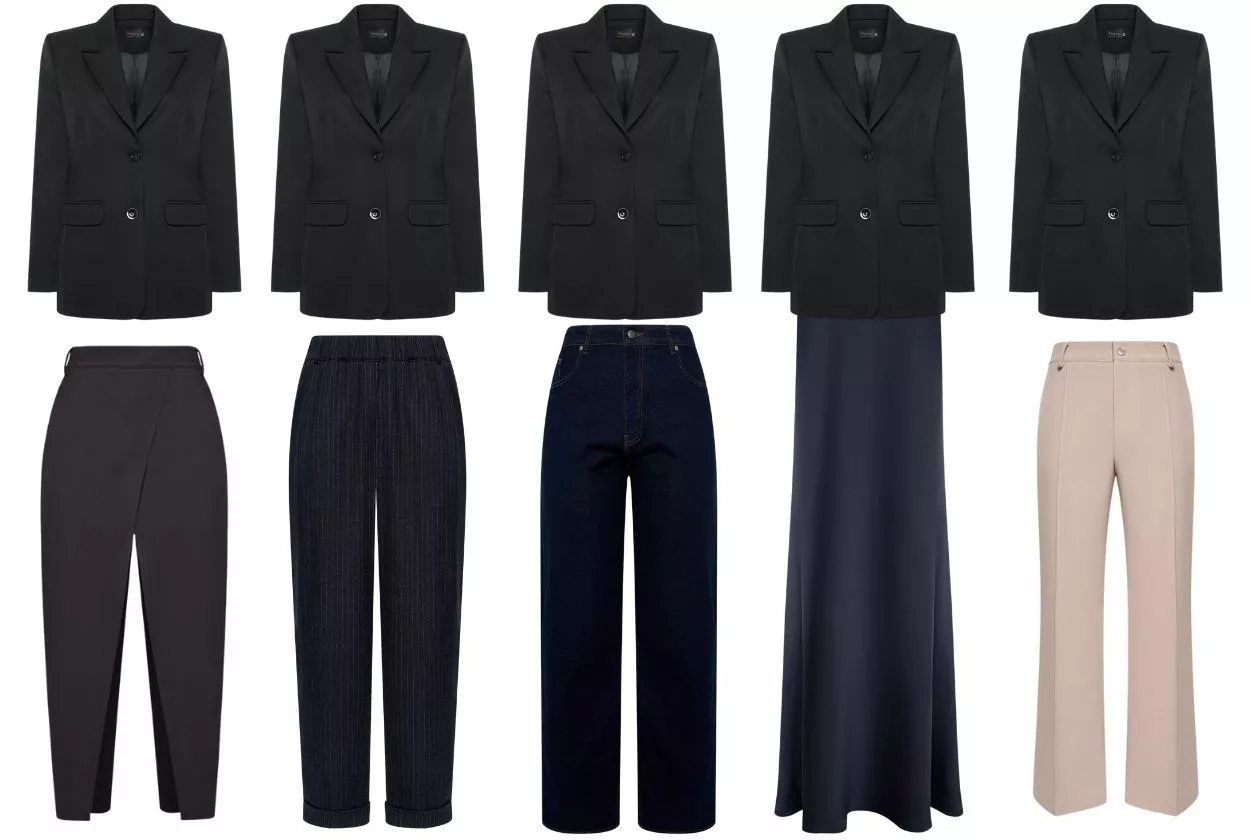 - Баланс силуэта: если пиджак объемный — низ должен быть более прилегающим. Если пиджак приталенный — можно позволить себе широкие брюки-палаццо, «алладины» или пышную юбку.