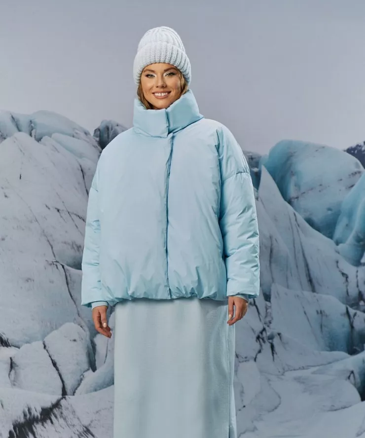 Ультралегкая дутая куртка пуховик голубого цвета