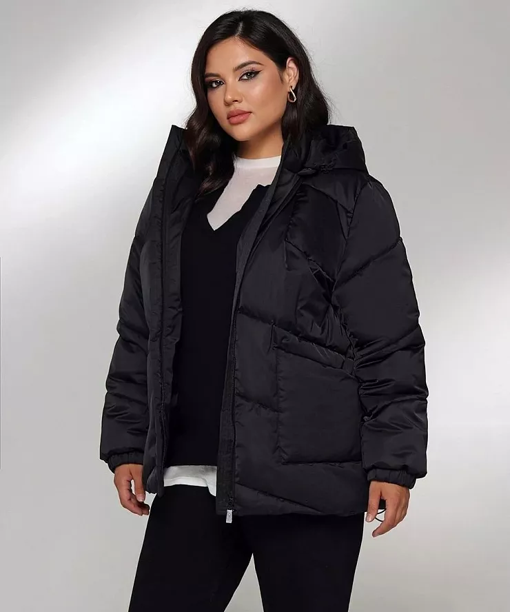 Ключевой принцип — контраст. Массивную куртку лучше сочетать с облегающим низом: узкими джинсами, леггинсами или прямыми брюками. Идеально подойдет монохромный образ в серых или черных тонах, разбавленный одной яркой деталью — неоновым аксессуаром или ботильонами на массивной подошве.