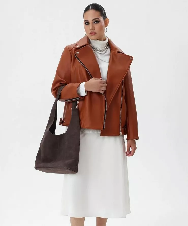 Косуха оверсайз в винтажном стиле из экокожи с потертостями