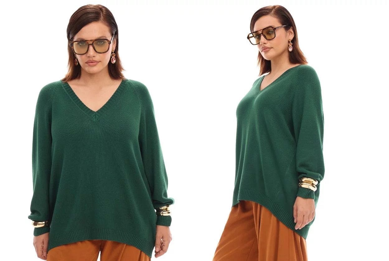 Изумрудный пуловер бойфренд из смесовой вискозы