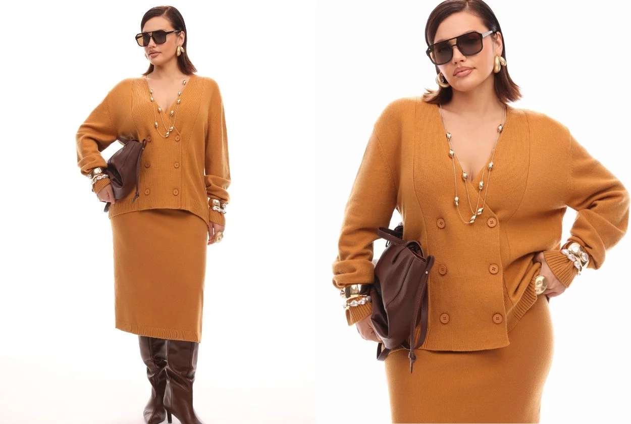 Мы сделали универсальные по своей подаче костюмы, с которыми вы можете не расставаться и зимой. Теплый трикотаж и экозамша подчеркивают ваши формы, дополняя и завершая капсулу.