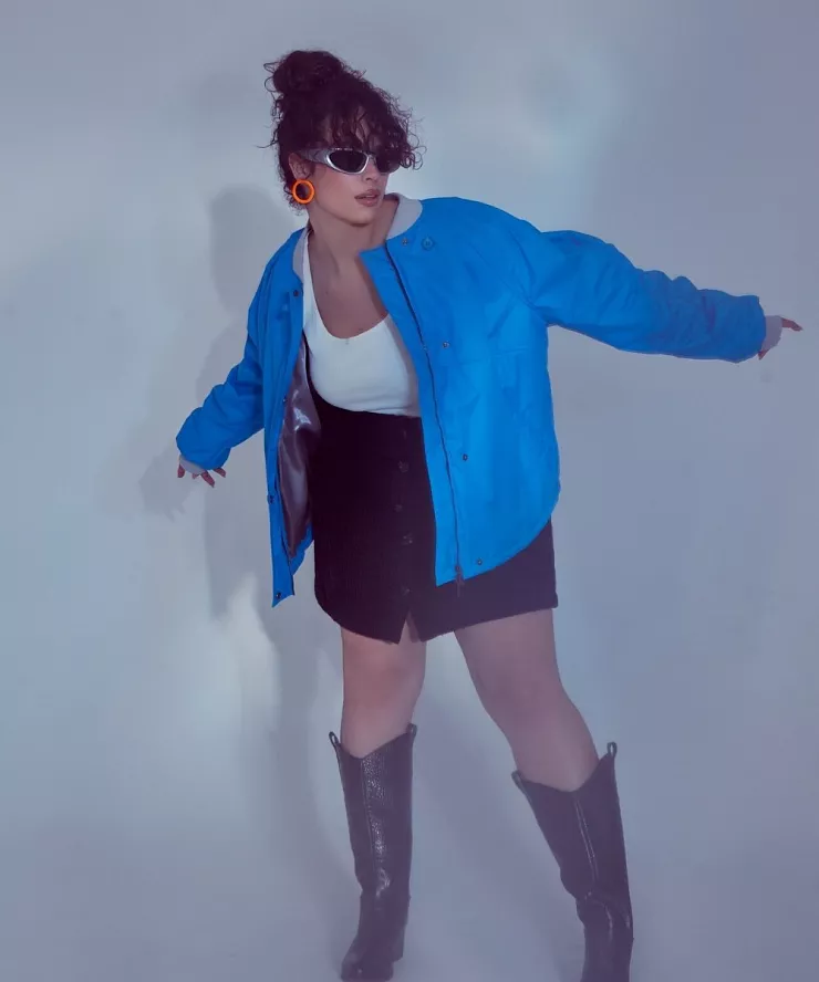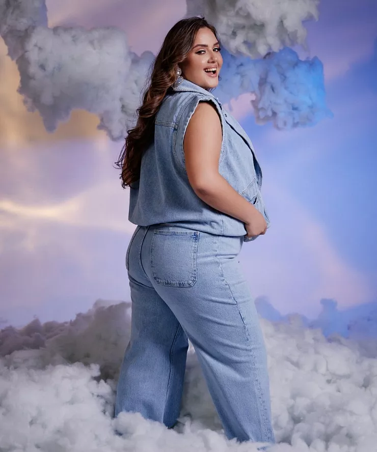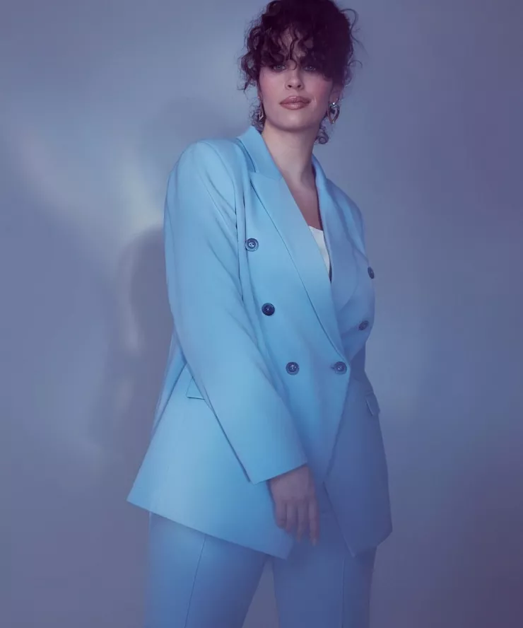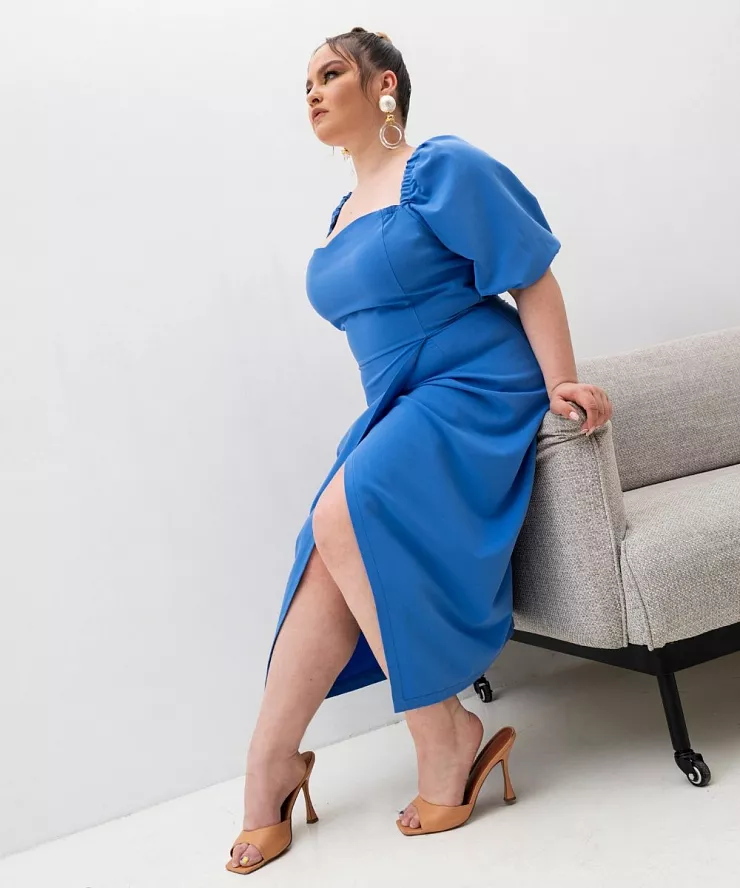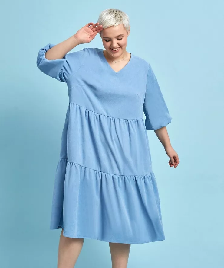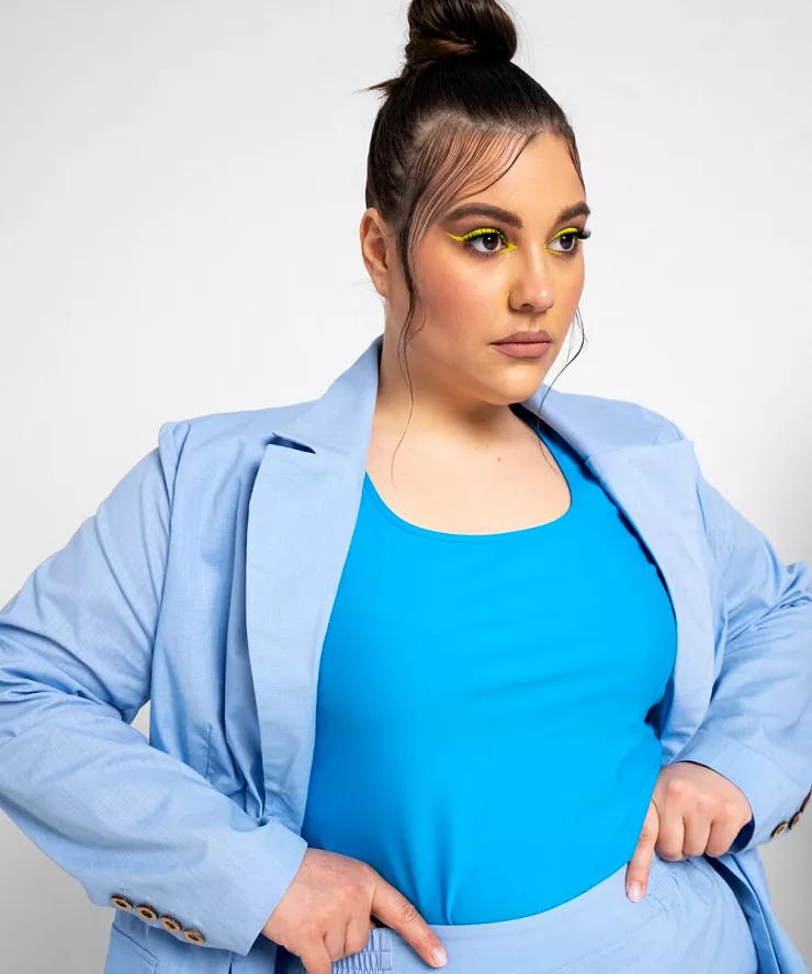 Расскажем про популярность голубых оттенков, подберем трендовые аутфиты для женщин плюс сайз.