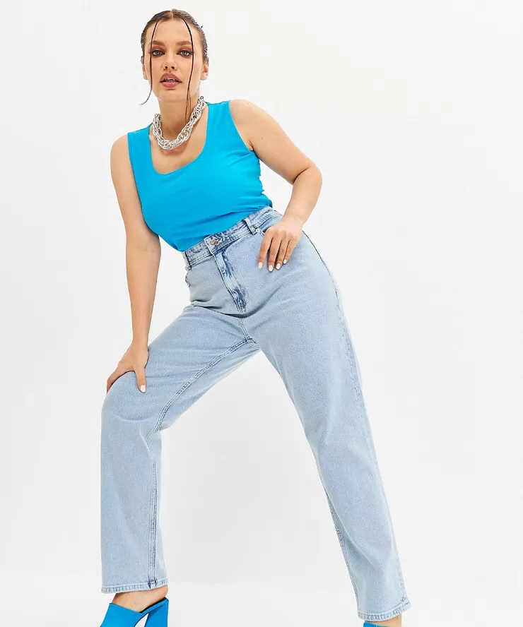 Голубые брюки с высокой посадкой