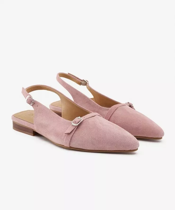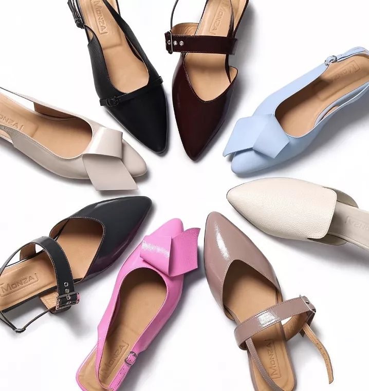Слингбеки – лаконичный вид туфель на низком каблуке. Они могут иметь простой дизайн или быть дополнены ремешками, фурнитурой, фигурными вставками.