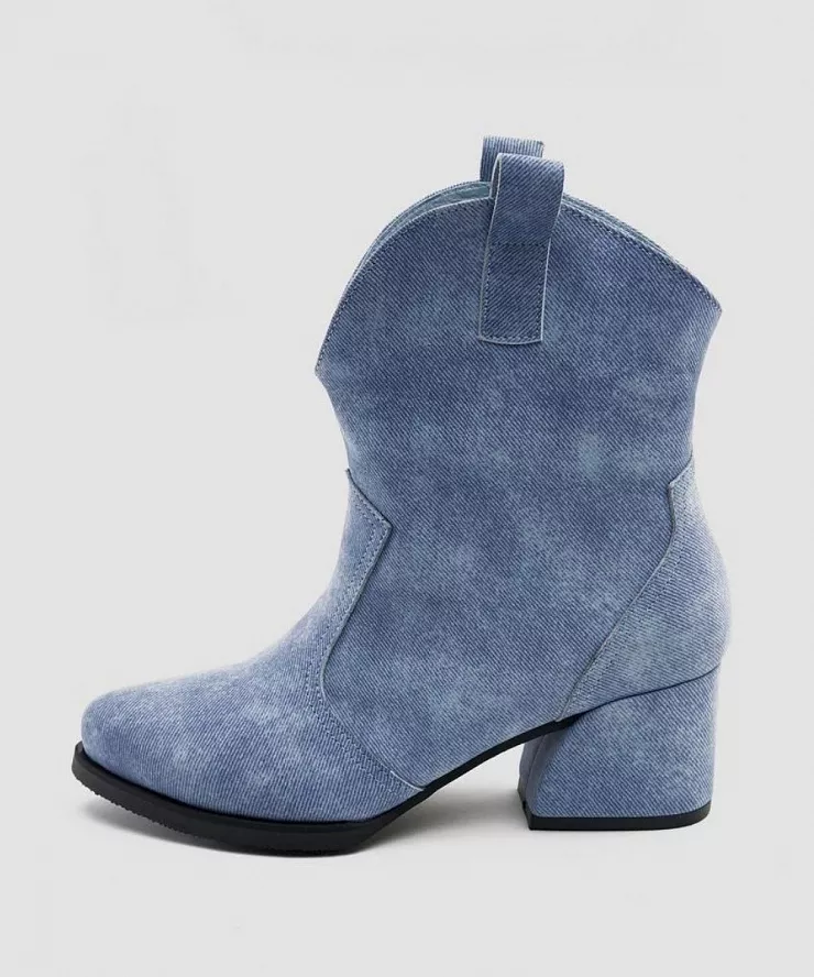 Кожаные короткие казаки с эффектом денима