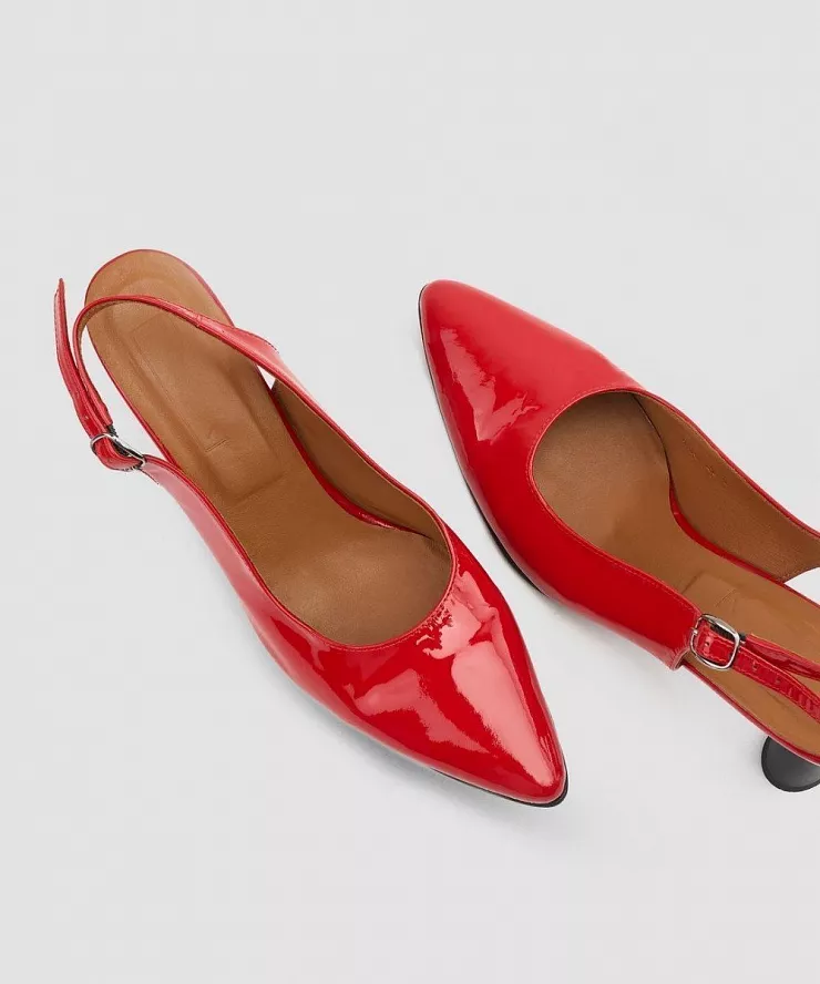 Лаковые бордовые слингбеки с острым мысом