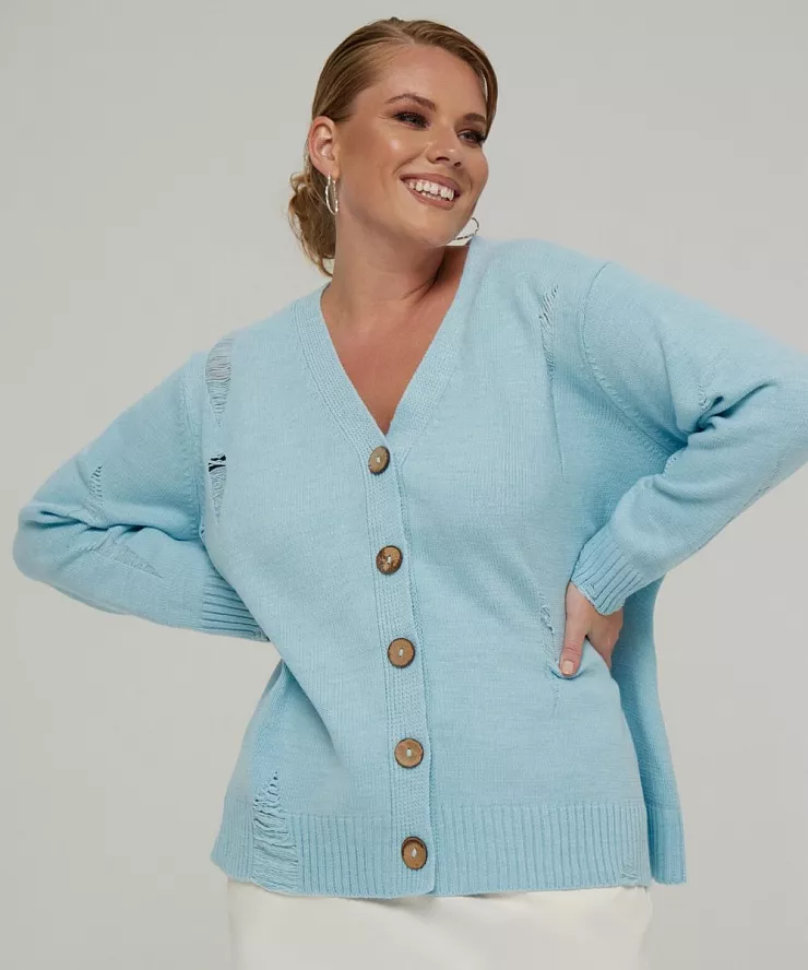 Голубой кардиган на пуговицах в стиле гранж