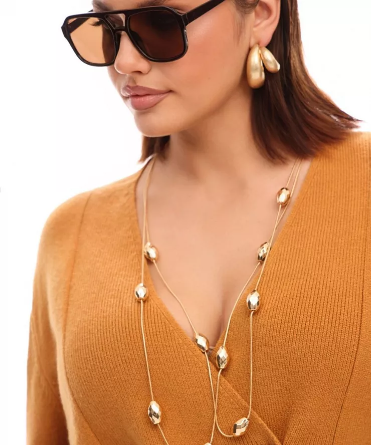 Колье — это фокусная точка, которая сразу привлекает внимание к вашему лицу и декольте. Оно способно: