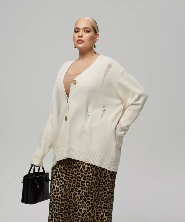Молочный кардиган на пуговицах в стиле гранж