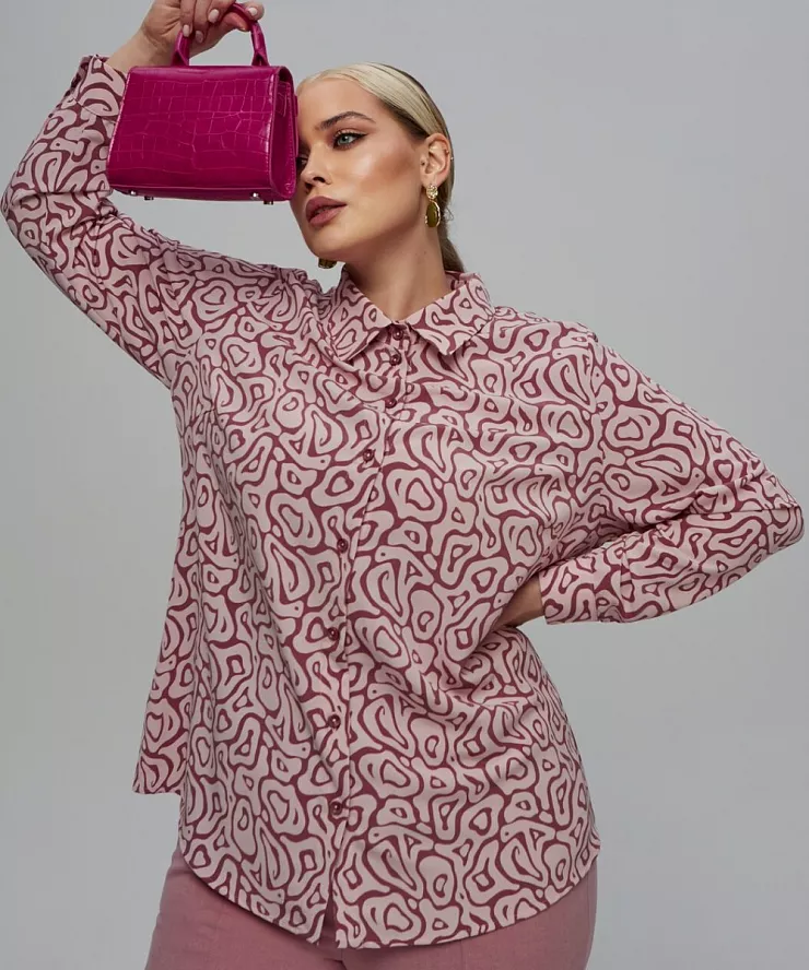 Розовая рубашка в стиле барбикор из крепа с принтом