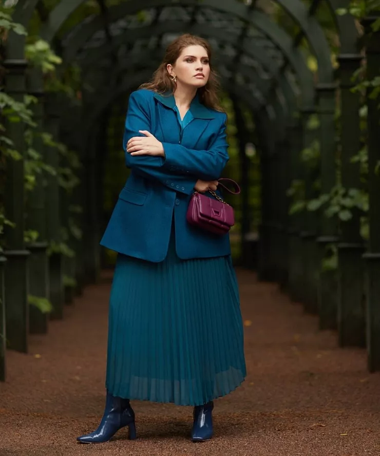 Еще один тренд, который мы внедрили в новую коллекцию. И здесь хочется сказать вот что: платья плиссе из смесового французского шифона выполнены вручную, имеют шелковую подкладку и ремень-фиксатор на талии для создания более женственного силуэта. Идеальны с пиджаками!