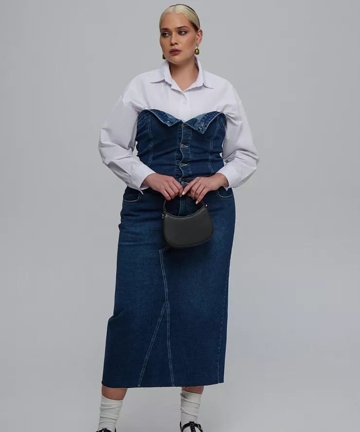 Джинсовое платье бандо с разрезом