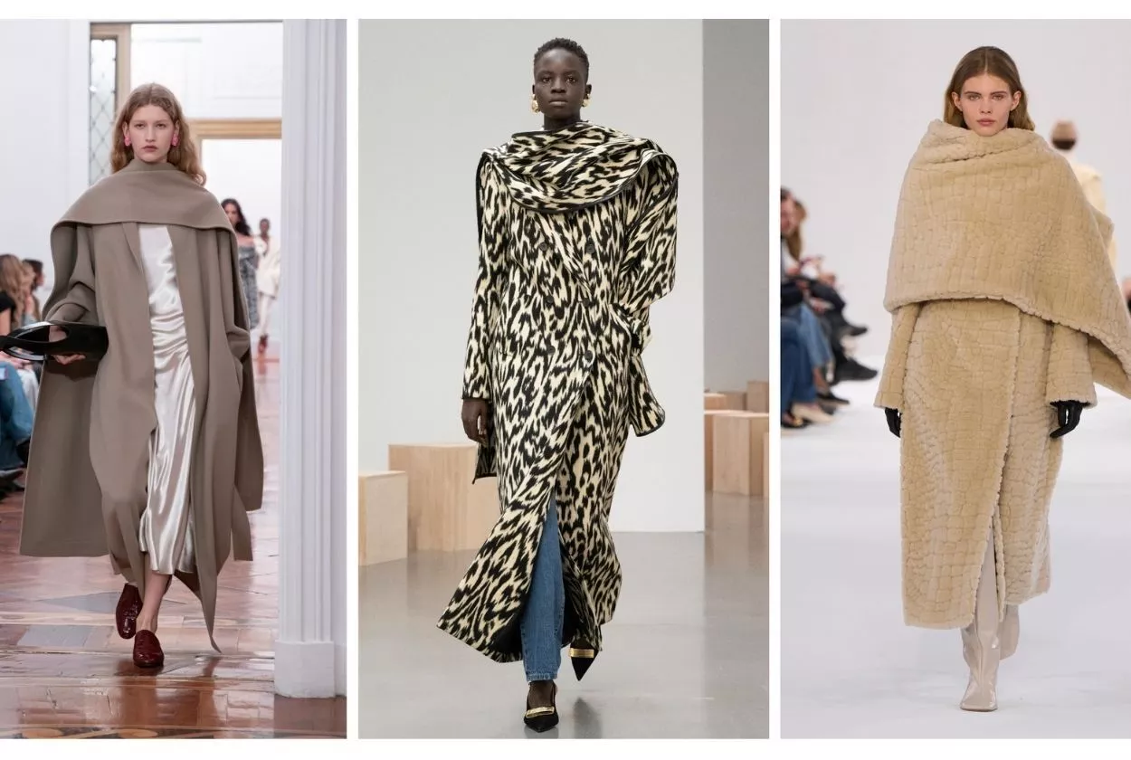 Начните с базы: выберите один доминирующий предмет в духе «силуэта-убежища» — будь то пальто-кокон или объемный свитер.