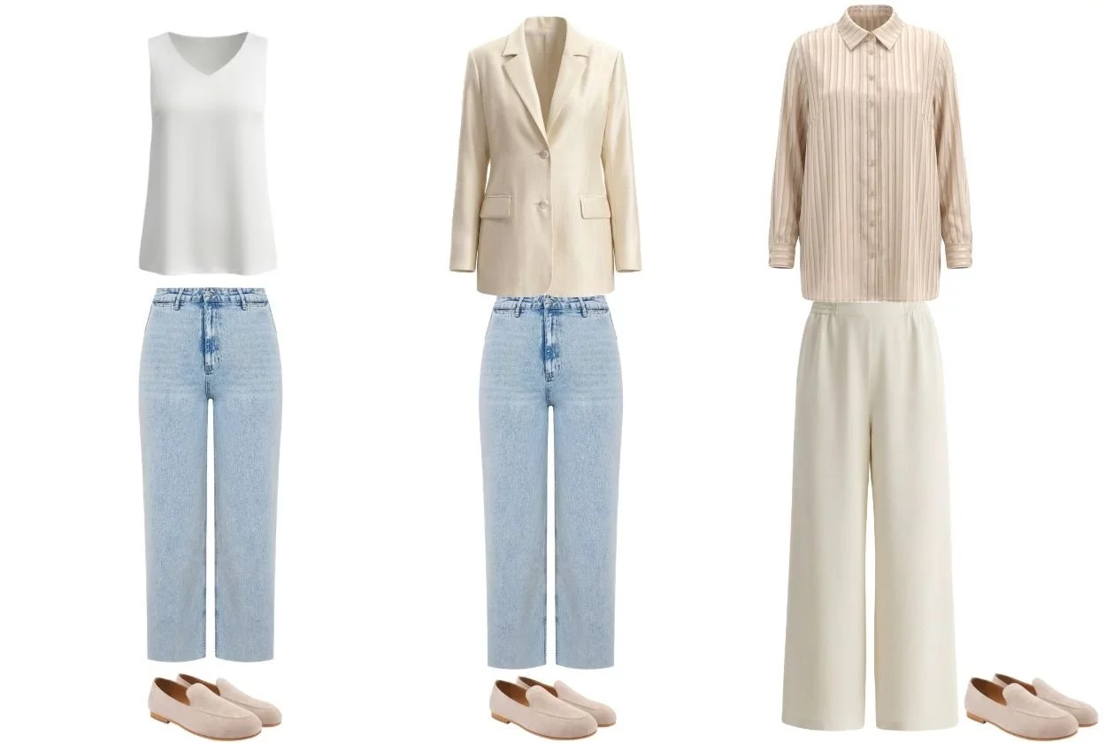 Бежевые лоферы — настоящие хамелеоны. Они будут работать везде.
