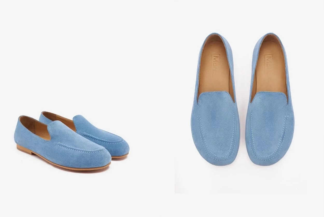 Перед вами не просто лоферы — это маленькая ода Европе и ее неторопливому ритму. Модель выполнена из мягкой голубой замши, с круглым мысом и увеличенной полнотой, что делает ее невероятно комфортной даже для широкой стопы. Подошва с маленьким устойчивым каблуком дает легкий подъем, но не отнимает свободы движения.