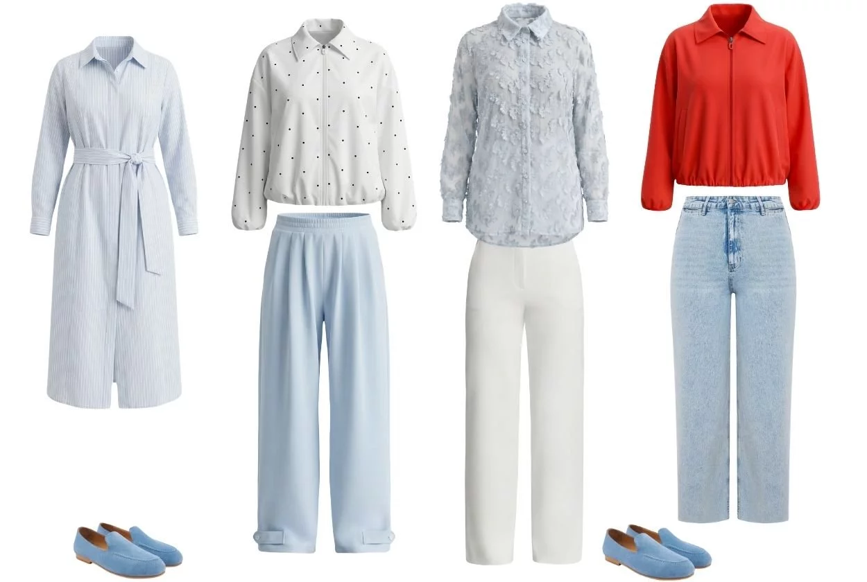 - С белыми брюками и голубой рубашкой — свежий, почти морской лук.
