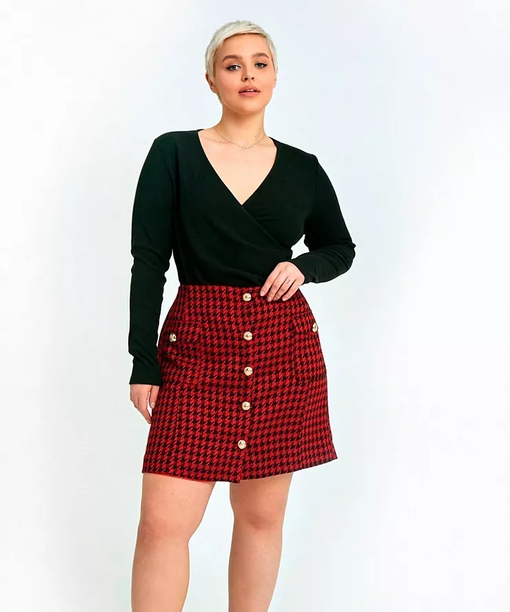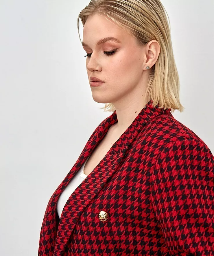 Пиджак в красную гусиную лапку с декоративными пуговицами