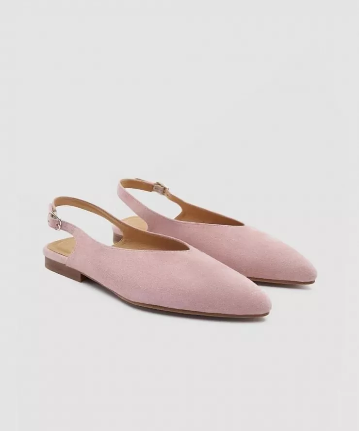 Розовые замшевые слингбеки с острым мысом и увеличенной полнотой