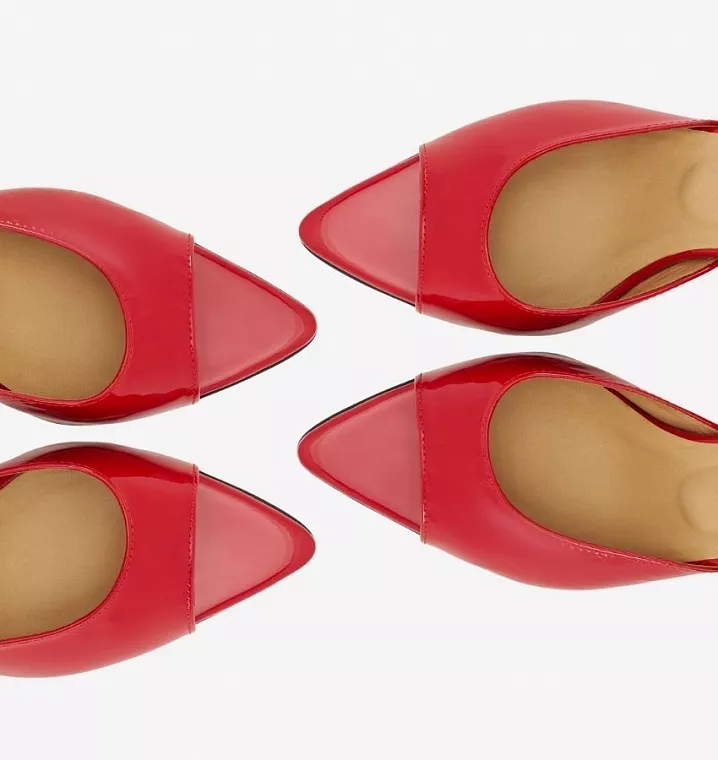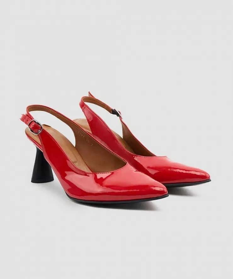 Лакированные слингбеки на каблуке с увеличенной полнот