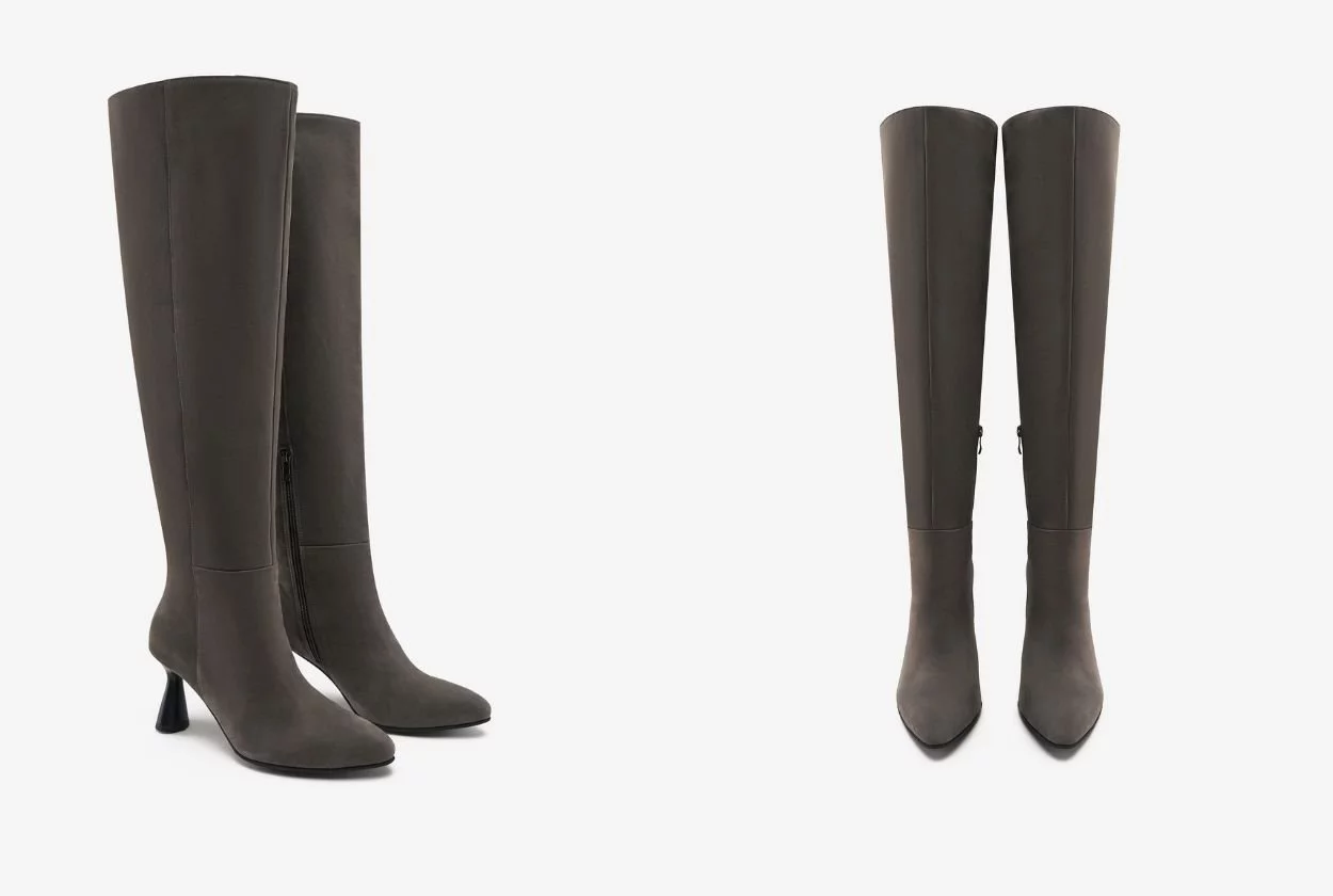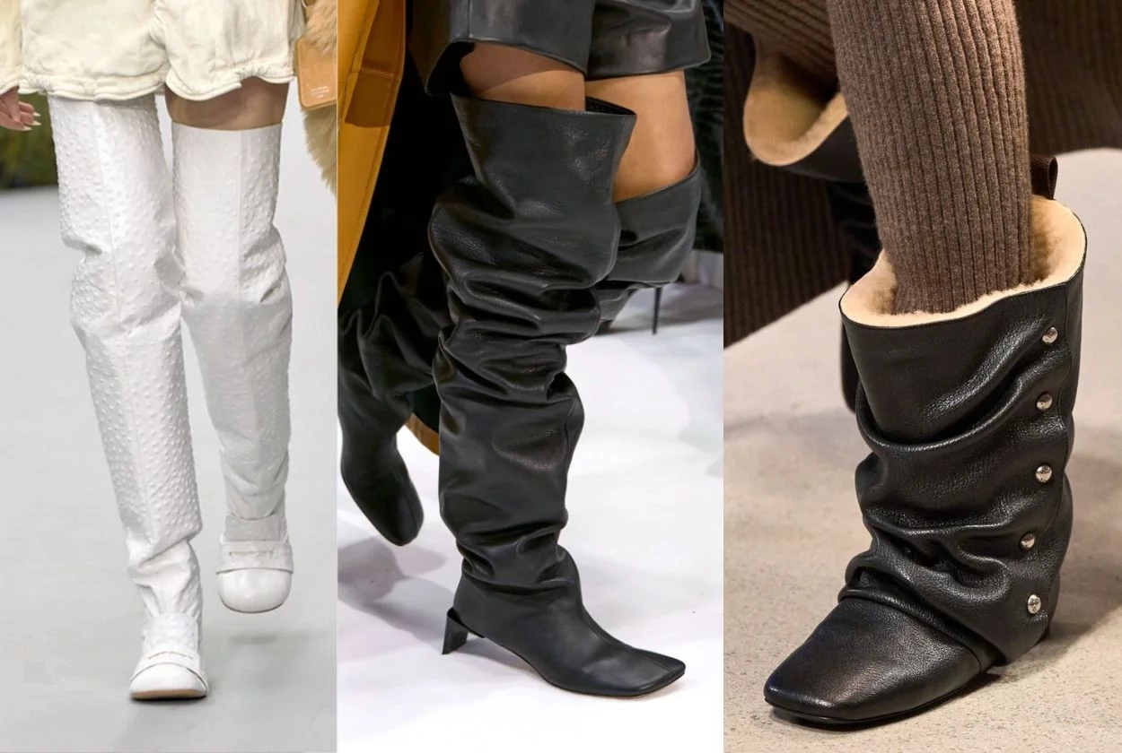 3. Объемные высокие сапоги с мягкой драпирующейся кожей/ замшей