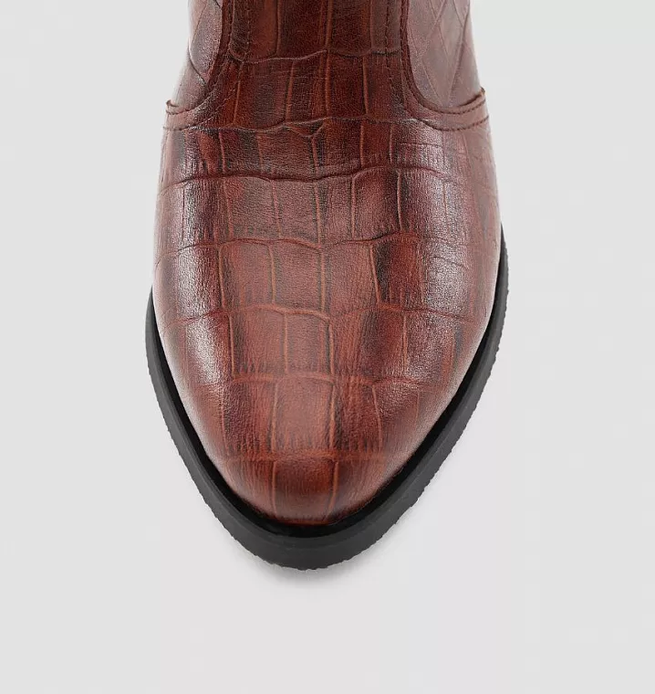 Наша новинка – казаки с эффектом рептилии в теплом бронзовом оттенке. Натуральная кожа, устойчивый каблук, острый мыс, невысокое голенище, позволяющее подобрать любые брюки или юбку. Настоящий хит осени!