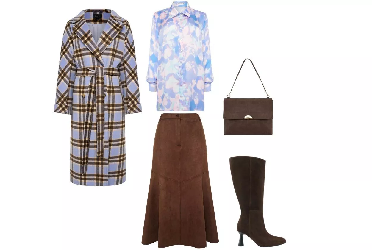 Почему это работает? Объединяющий фактор — теплая осенняя палитра. Крупная графичная клетка и нежный цветочный принт могут друг с другом уживаться, если имеют общий знаменатель в виде цветовой гаммы. Здесь допустим контраст только в виде рисунка, а нейтральное пальто или кардиган могут выступать в роли «буфера» и связующего воедино звена.