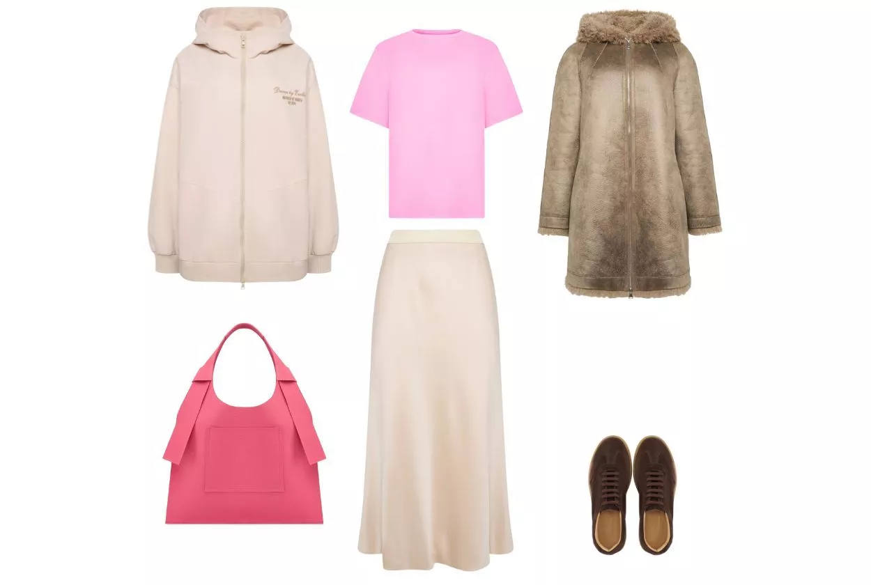 Почему это работает? Пышный силуэт юбки добавляют нарядности и женственности, которые контрастируют с демократичным худи, но объединяются за счет общей «уютной» фактурности и теплой осенней палитры.